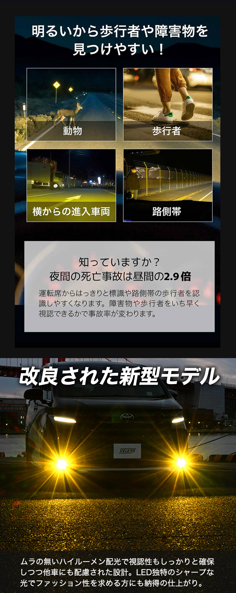 2色切り替え LEDフォグランプ 5100lm ホワイト × 7100lm イエロー