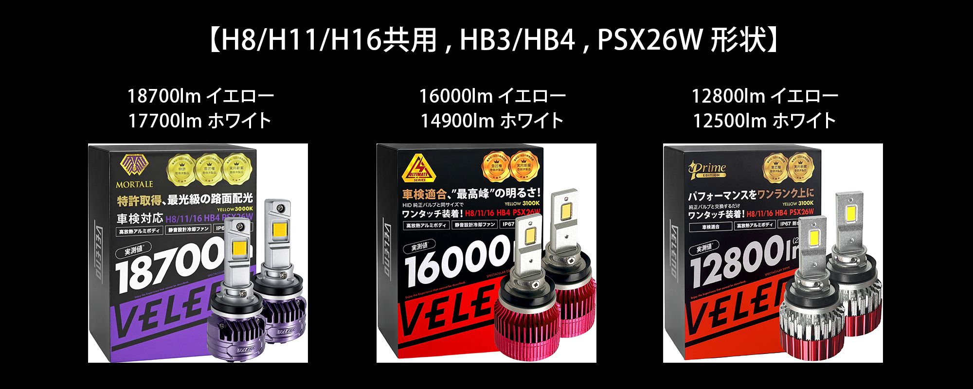 【MORTALE】LEDフォグランプ / ヘッドライト14400lm(Yellow)/ 13400lm(White)