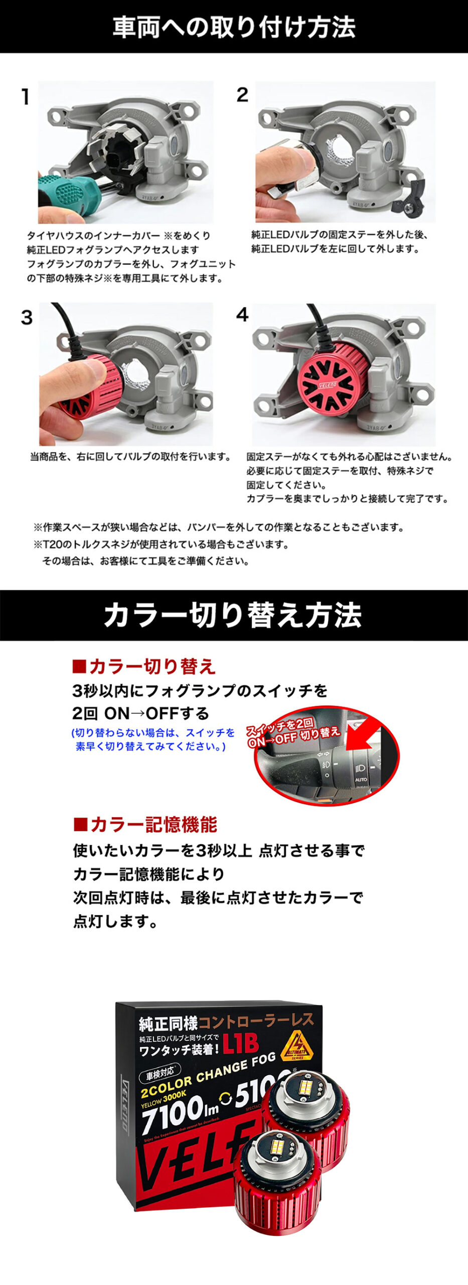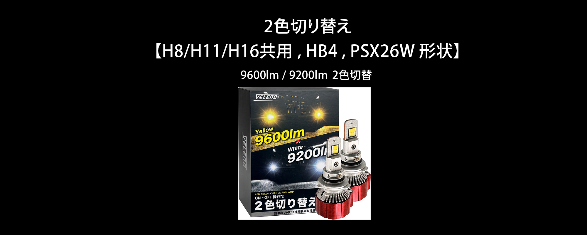 VELENO 2色切り替え LEDフォグランプ 5100lm ホワイト × 7100lm イエロー / グリーン / ブルー /ピンクパープル【L1B】