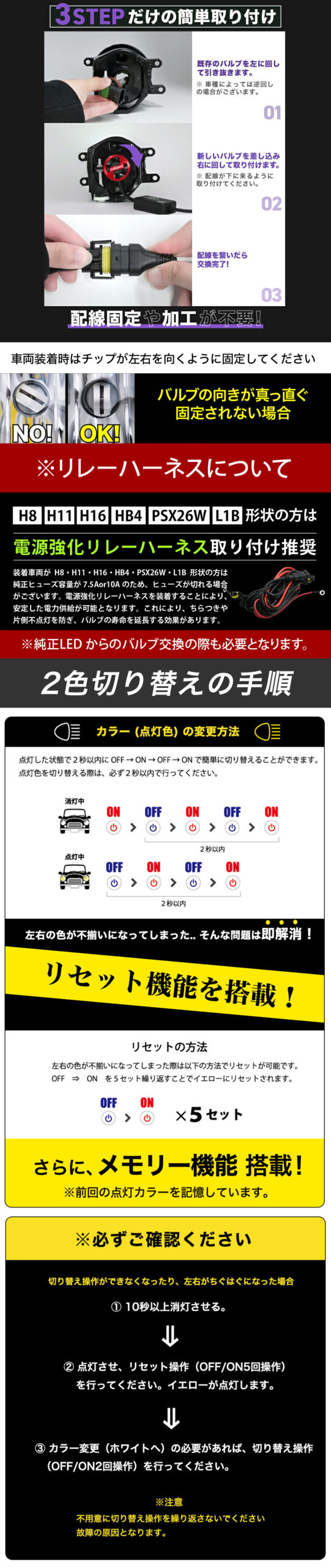 【ULTIMATE】 LEDフォグランプ (ヘッドライト)16000lmイエロー/14900lmホワイト