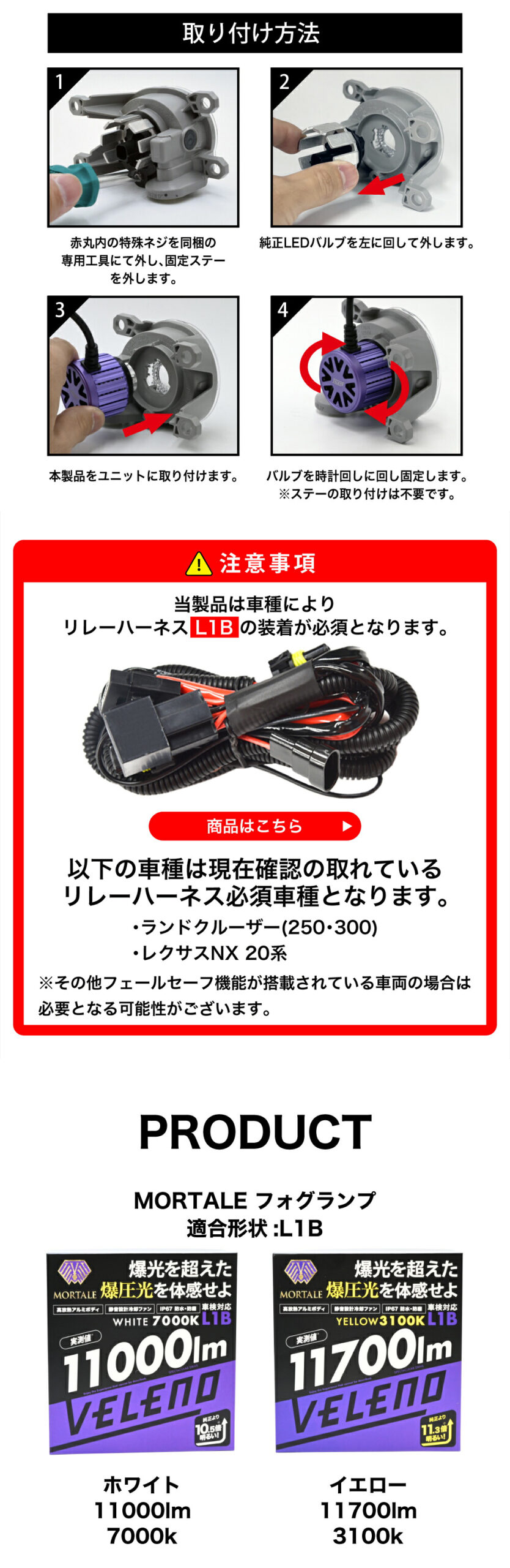 【MORTALE】LEDフォグランプ – 11700lm/11000lm (L1B)